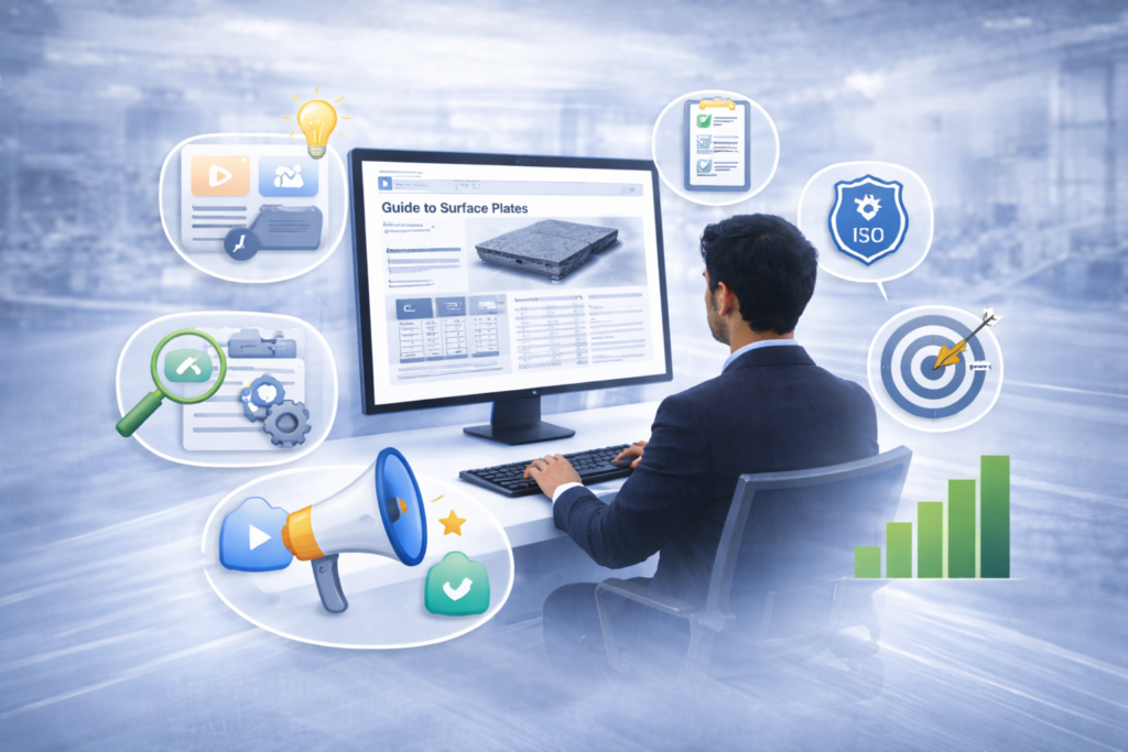 This guide explains how surface plate manufacturers can use modern digital marketing and AI-driven visibility strategies to generate qualified B2B leads, improve brand authority, and reduce dependency on middlemen.